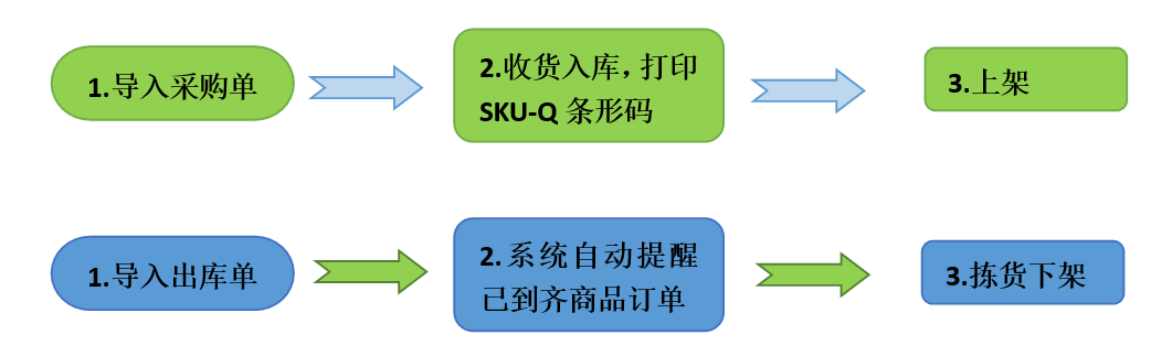 瑞康Ewms根據(jù)天鳥(niǎo)國(guó)際實(shí)際情況結(jié)合瑞康多年來(lái)在倉(cāng)儲(chǔ)管理系統(tǒng)方面的經(jīng)驗(yàn),優(yōu)化天鳥(niǎo)現(xiàn)有操作流程、采用智能PDA設(shè)備實(shí)現(xiàn)更高效、更方便的揀貨下架方案。瑞康首創(chuàng)將“SKU”條碼升級(jí)到“SKU-Q”碼,實(shí)現(xiàn)單件商品從進(jìn)倉(cāng)、上架、下架到出庫(kù)整個(gè)周期內(nèi)的溯源。更高效、更智能的管理每一件商品。Ewms出入庫(kù)流程如下: