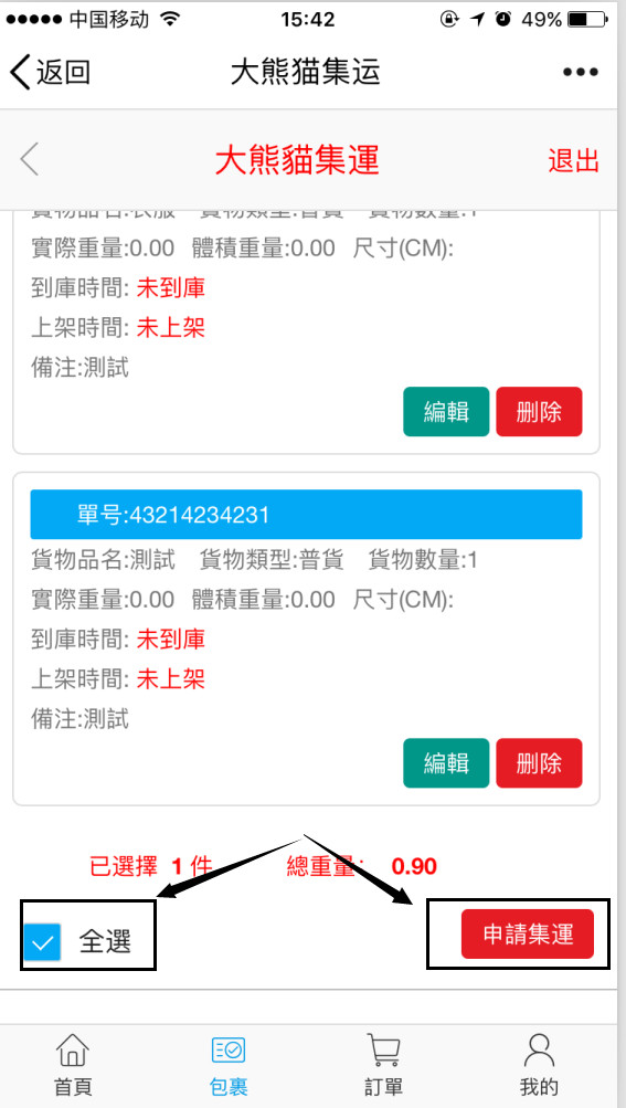 第五步:快遞到達(dá)集運(yùn)倉(cāng)后,集運(yùn)系統(tǒng)會(huì)主動(dòng)通知您可進(jìn)行申請(qǐng)打包