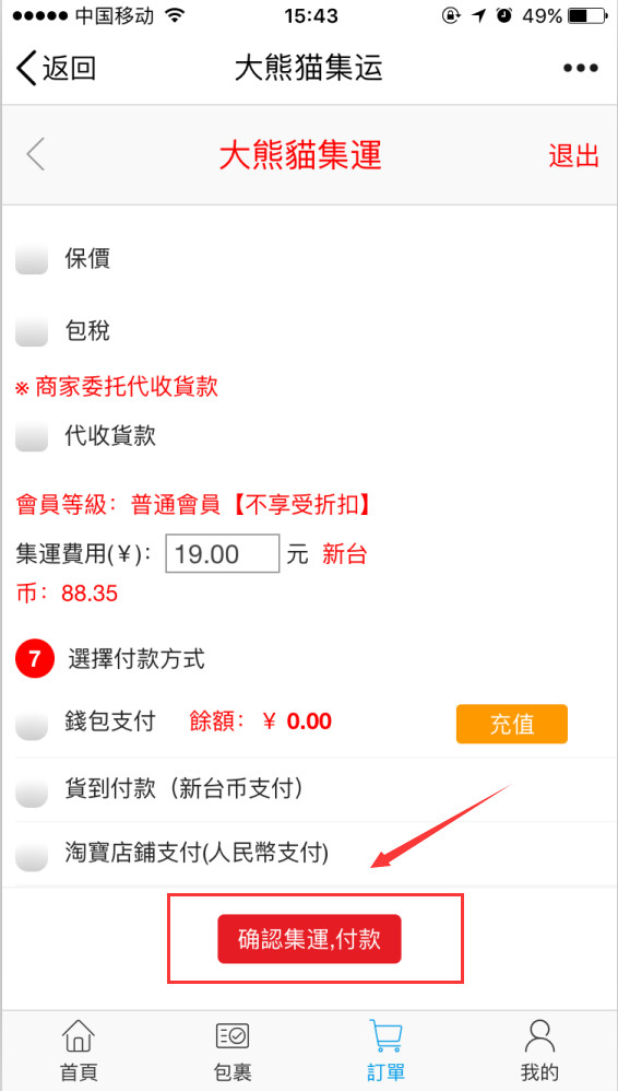 第七步:選擇付款方式(支持支付寶微信支付)最后不要忘記點(diǎn)擊確認(rèn)集運(yùn)哦
